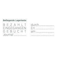 Kombiniert einen 4mm Datumsabdruck (T/M/J) mit einem selbstzusetzenden Text. Das Jahresband reicht für 12 Jahre. Um das Datum hervorzuheben wird dieses in rot und der Text in blau gestempelt.