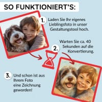 Verschenken Sie etwas ganz Besonderes: ein Puzzle mit einer Aquarellzeichnung, die aus Ihrem eigenen Foto erstellt wird. Laden Sie einfach Ihr Lieblingsbild hoch – daraus entsteht eine zarte, farbenfrohe Illustration im Aquarellstil, die exklusiv auf das Puzzle gedruckt wird. Beim Zusammensetzen entfaltet sich das Motiv Schritt für Schritt und sorgt für ein persönliches und emotionales Erlebnis.